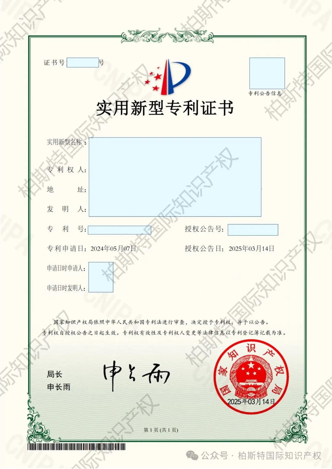 还想了解更多[敏感词]知识产权证书?欢迎这个假期持续关注我们~我们将持续为您带来更多其他[敏感词]相关样本~